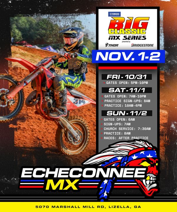 Welcome to Echeconnee MX! We are thankful you have chosen to attend our event. In order for it to be a safe, successful and enjoyable event for everyone there are rules each racer, their family, friends and pit crew must follow. Failure to comply with these rules may result in your disqualification and/or removal from the event.